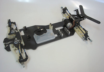 It has our P.R.O. (push rod option) front end...it has our Super Trans for those high hp engines of today...it has adjustable rear arms, dual rear roll center options, GT gas tank, GT throttle servo mounts, and our stand-up steering mount that accepts standard size servos. It also comes with B4 CVD's and a rear shock tower that accepts TC3 threaded shocks (standard shocks) or optional .71 rear shocks for slightly bumpy tracks that use buggy tires.