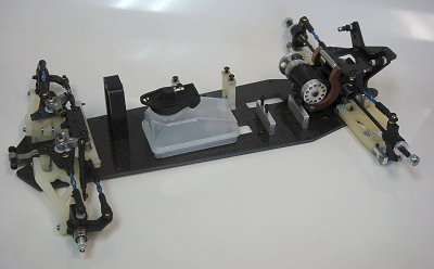 It has our P.R.O. (push rod option) front end...it has our Super Trans for those high hp engines of today...it has adjustable rear arms, dual rear roll center options, GT gas tank, GT throttle servo mounts, and our stand-up steering mount that accepts standard size servos. It also comes with our Dynotech sprint cage and sprint body, B4 CVD's, and a rear shock tower that accepts TC3 threaded shocks (standard shocks) or optional .71 rear shocks for slightly bumpy tracks that use buggy tires.