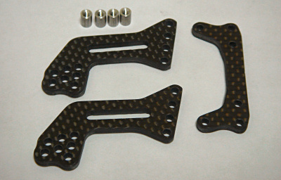 This conversion allows you to run the shocks on the outside of the cage, therefore allowing you to use softer springs for different track situations. Fits onto the Dynotech Delta.